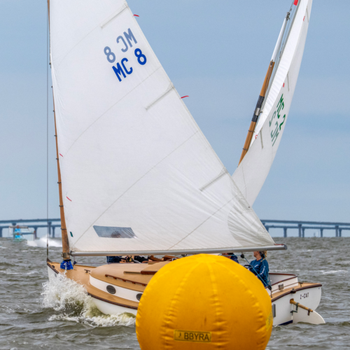 This design was created for the North American Lightning National Championship Regatta, held at Toms River Yacht Club in 2023. The illustration showcases two colorful spinnaker sails, one with the Lightning National Fleet logo and the other with the year, and serves as a reminder of the high energy regatta for spectators and sailors alike.