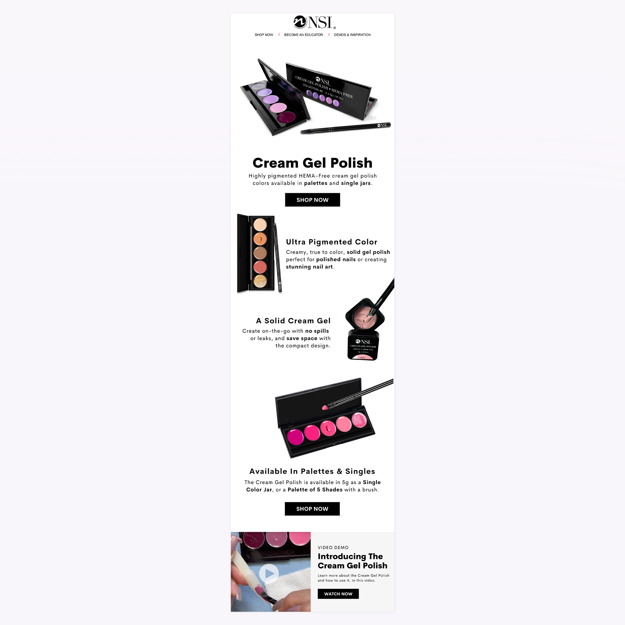 For the launch of the Cream Gel Polish, I planned a social marketing campaign with the goal of creating excitement around the product in anticipation of the launch. We introduced the product over 3 months in advance of launching the product online for sale. This meant sprinkling imagery and information about the product across social media to help excite the entire audience in our global network.